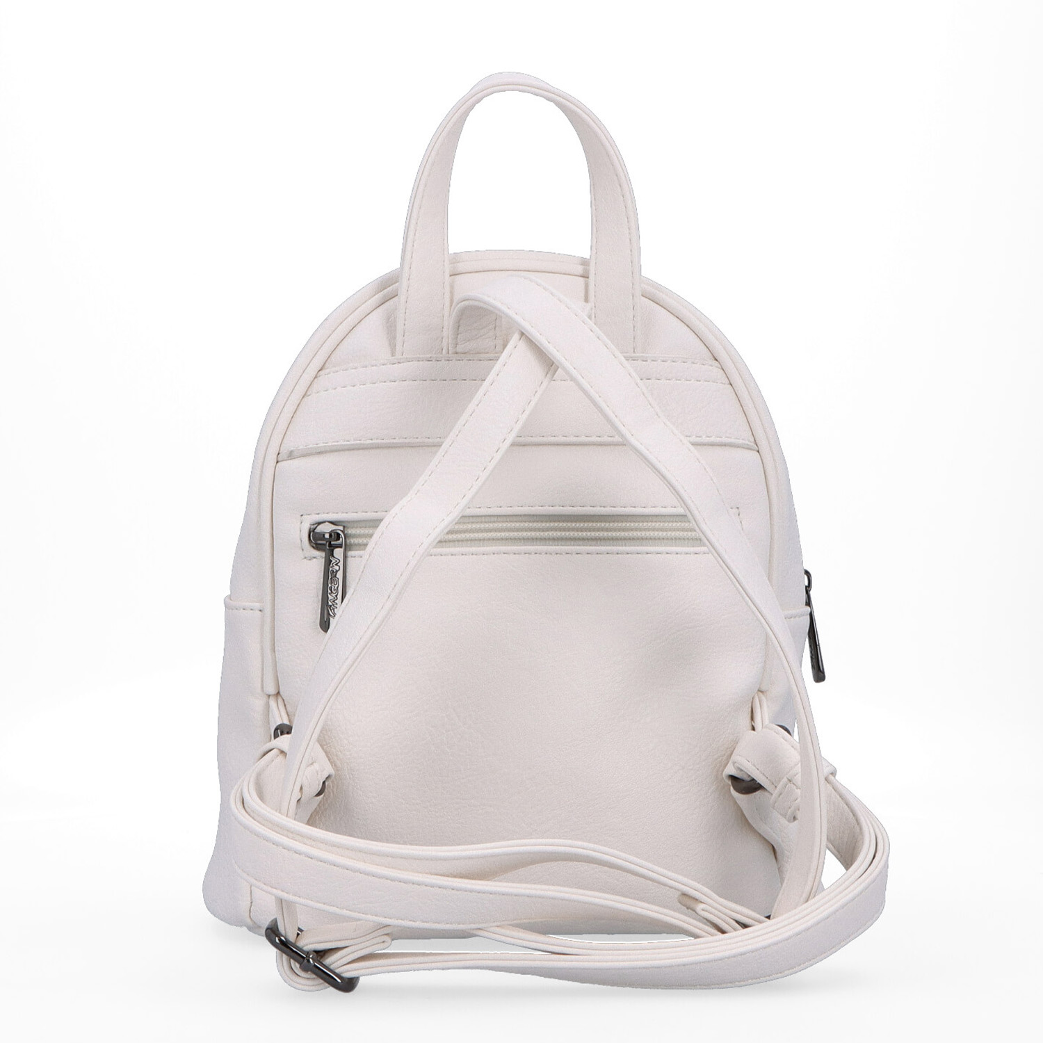 Elegantní městský batoh od značky Tangerin který můžete nosit i k šatům místo kabelky. Batůžek je menší velikosti, ale pohodlně do něj vložíte malou lahev s pitím, peněženku, doklady, brýle a drobnou kosmetiku. Uvnitř batohu je elegantní látková podšívka s barevným potiskem, jedna malá zipová kapsička na uložení dokladů a přihrádka na mobil. Na přední straně je malá praktická kapsa na zip. Popruhy jsou šikovně přichycené na boku batohu a proto se batůžek dobře nosí.