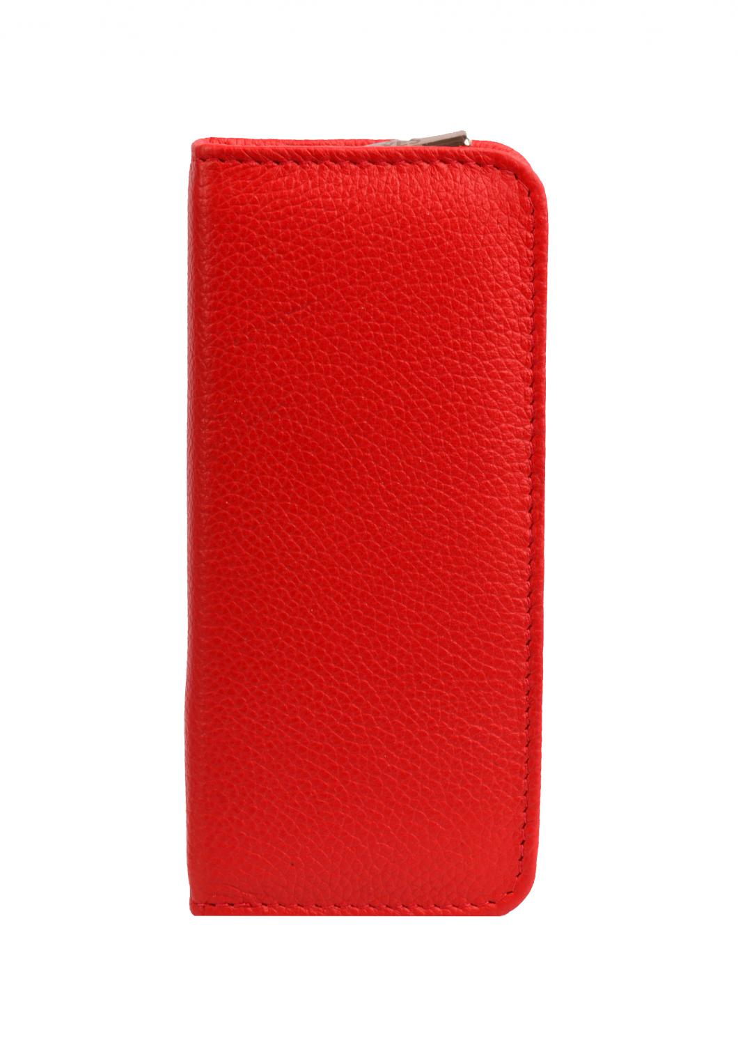 Pouzdro manikúry je vyrobené z elegantní červené kůže, uzavírání je na kovový zip ve stříbrné barvě.