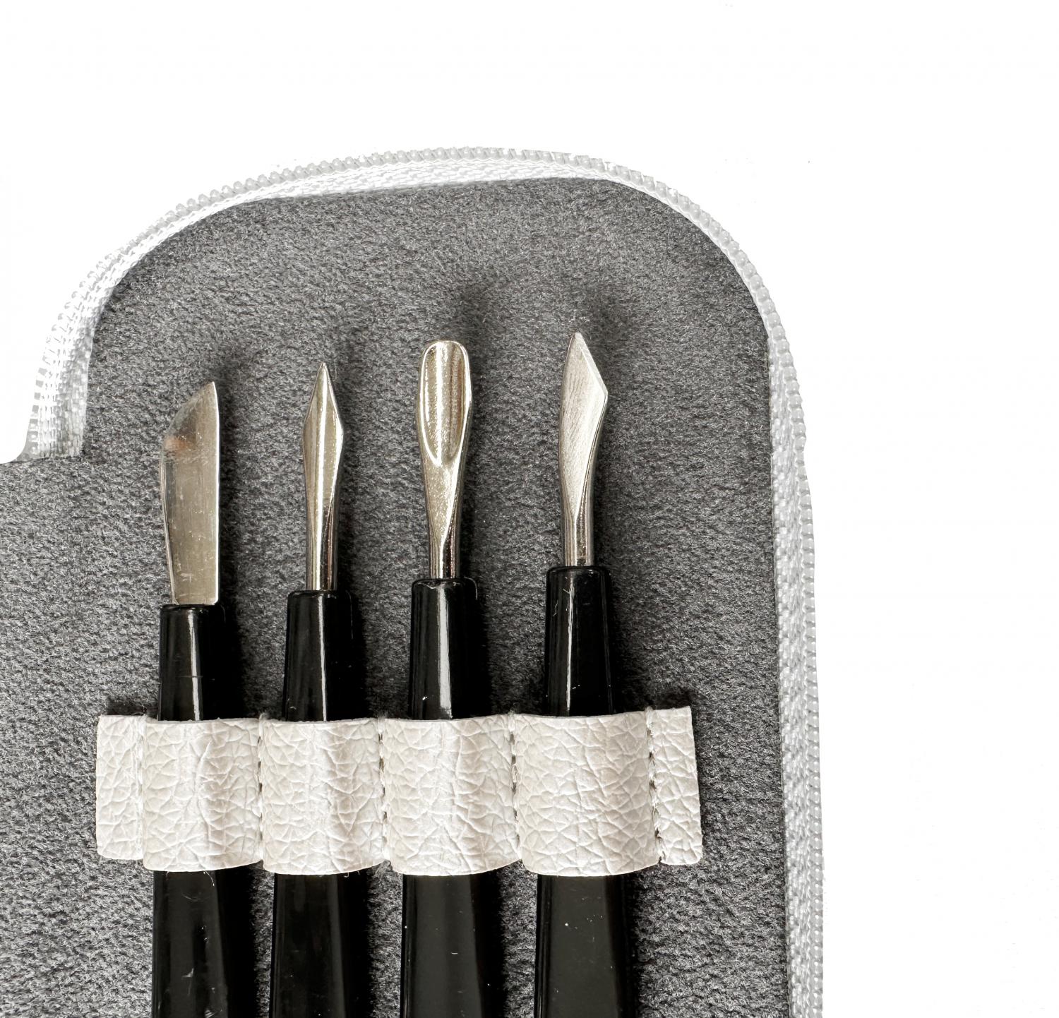 • 4 malá manikúrní náčiní: nožík, lopatička, skalpel a odhrnovač