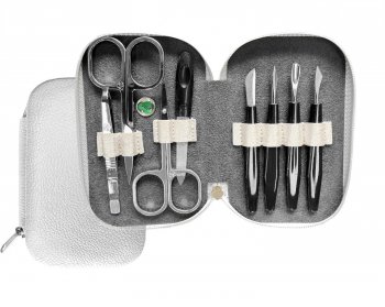 Souprava obsahuje vše potřebné pro úpravu nehtů na rukou i nohou – od nůžek, přes pinzetu, až po pilníček. Praktické uspořádání a kvalitní zpracování zaručuje dlouhou životnost a pohodlné používání.