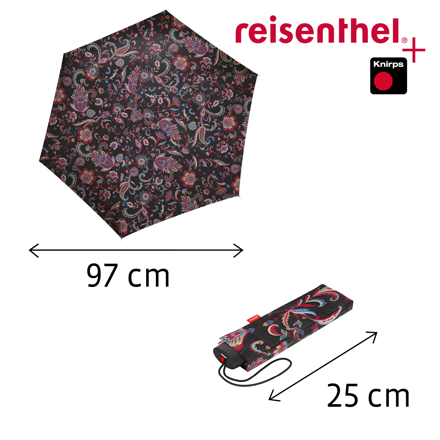 Lehký dámský skládací plochý deštník Reisenthel umbrella pocket mini paisley black RT7064