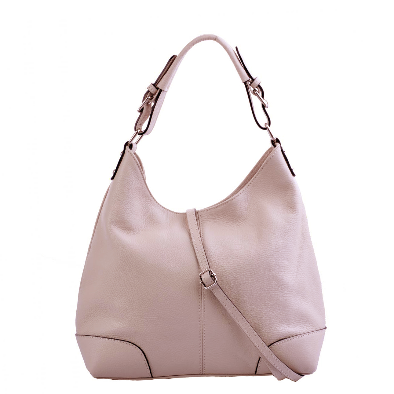 Elegantní kožená kabelka z Itálie vyrobená z příjemné kůže, která je odolná proti poškrábání. Kabelka má jednu kapsu na zip, uvnitř je textilní podšívka.