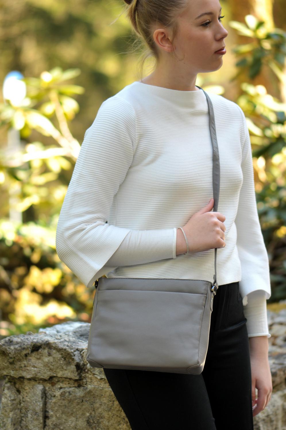 Elegantní šedá kabelka je vyrobená z měkké a velice příjemné kůže. Kabelka má praktický tvar, který je nadčasový a hodí se na každou příležitost. Antracitové luxusní kovové doplňky podtrhují celkový hezký dojem z kabelky.