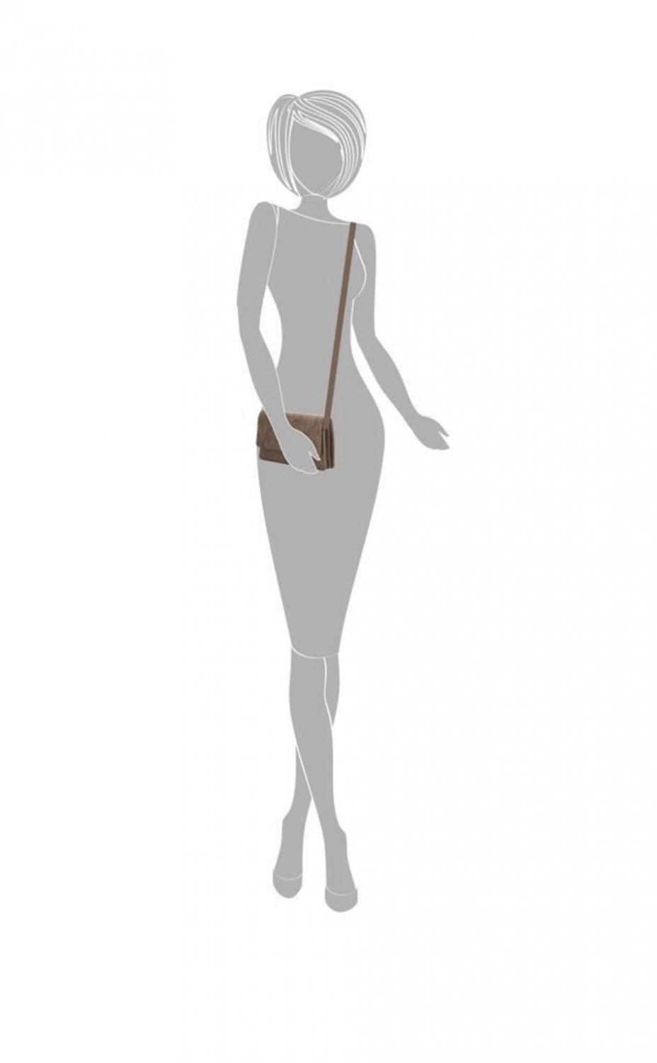 Díky své velikosti a vnitřnímu uspořádání můžete kabelku použít jako větší peněženku s popruhem přes rameno.