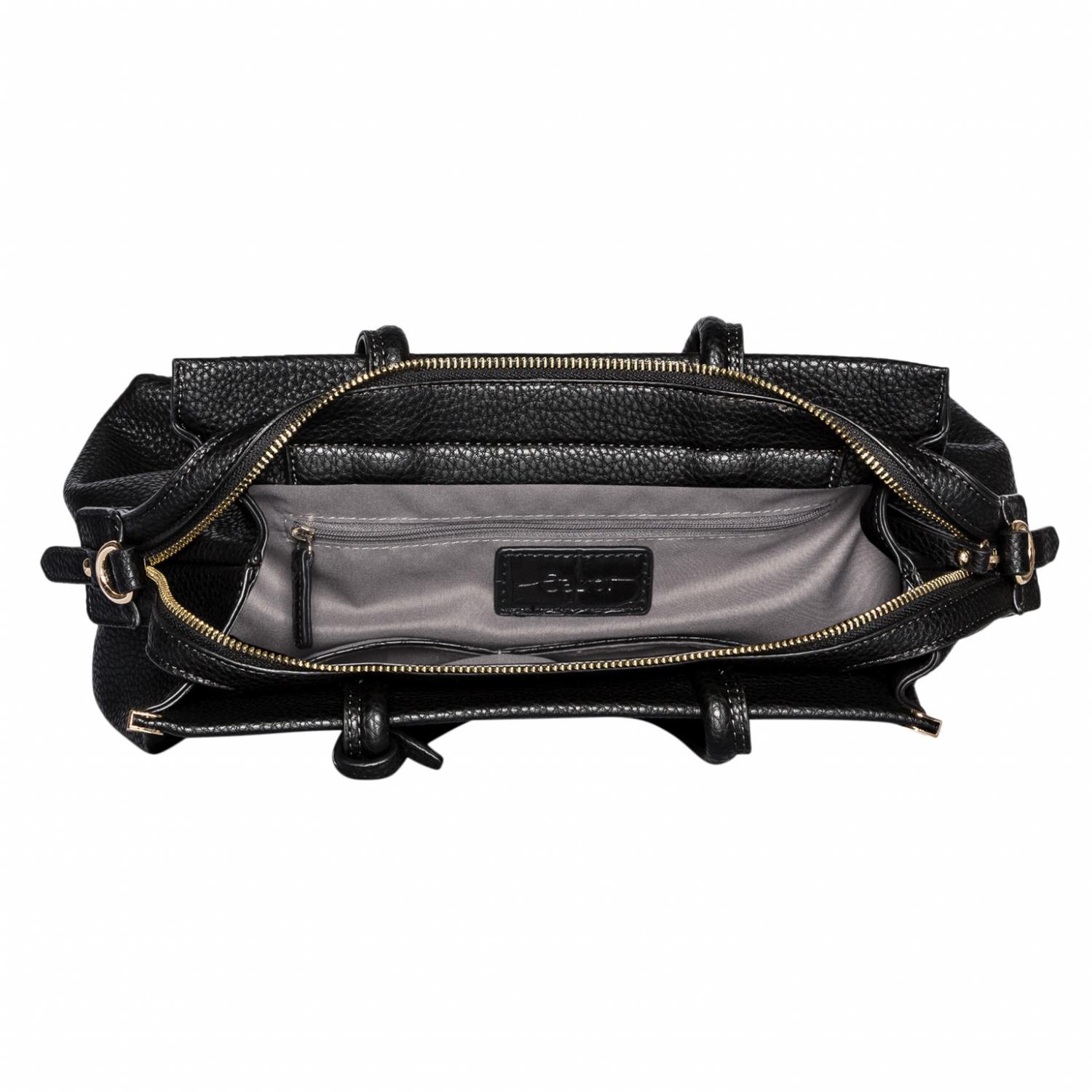 Elegantní kabelka GELA z pravidelné zrnité imitace kůže v nadčasové černé barvě. Díky svému klasickému tvaru a elegantnímu vzhledu se dá snadno kombinovat se všemi outfity. Díky ozdobným kovovým detailům v matné zlaté barvě a krásnému přívěsku s logem Gabor vylepší neformální městský vzhled nebo elegantní business outfit.