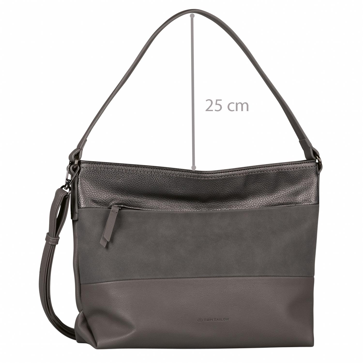 Prostorná velká kabelka Tom Tailor Nicolina z imitace kůže v neutrální kombinaci šedých odstínů. Díky svému tvaru a elegantnímu vzhledu se snadno kombinuje se všemi outfity. Zajímavostí kabelky je, že má dva popruhy na rameno. Délka kratšího popruhu je 58 cm. Pokud preferujete nosit kabelku křížem přes tělo, je ke kabelce dodáván delší užší popruh, který si můžete libovolně upravit v délce max. 140 cm.