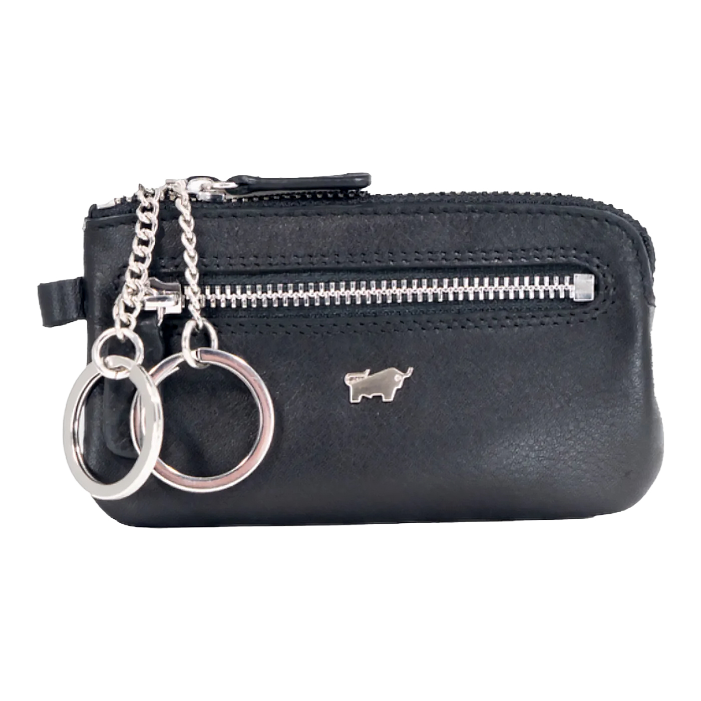 Uvnitř najdete dva pevné kovové kroužky, které bezpečně udrží vaše klíče a umožní jejich rychlý přístup. Praktické vnitřní přihrádka pojme platební kartu nebo složené bankovky. Na přední straně je navíc samostatná zipová kapsa, ideální na mince či drobnosti. Boční kožené poutko umožňuje připevnění k dalšímu kroužku nebo karabině.