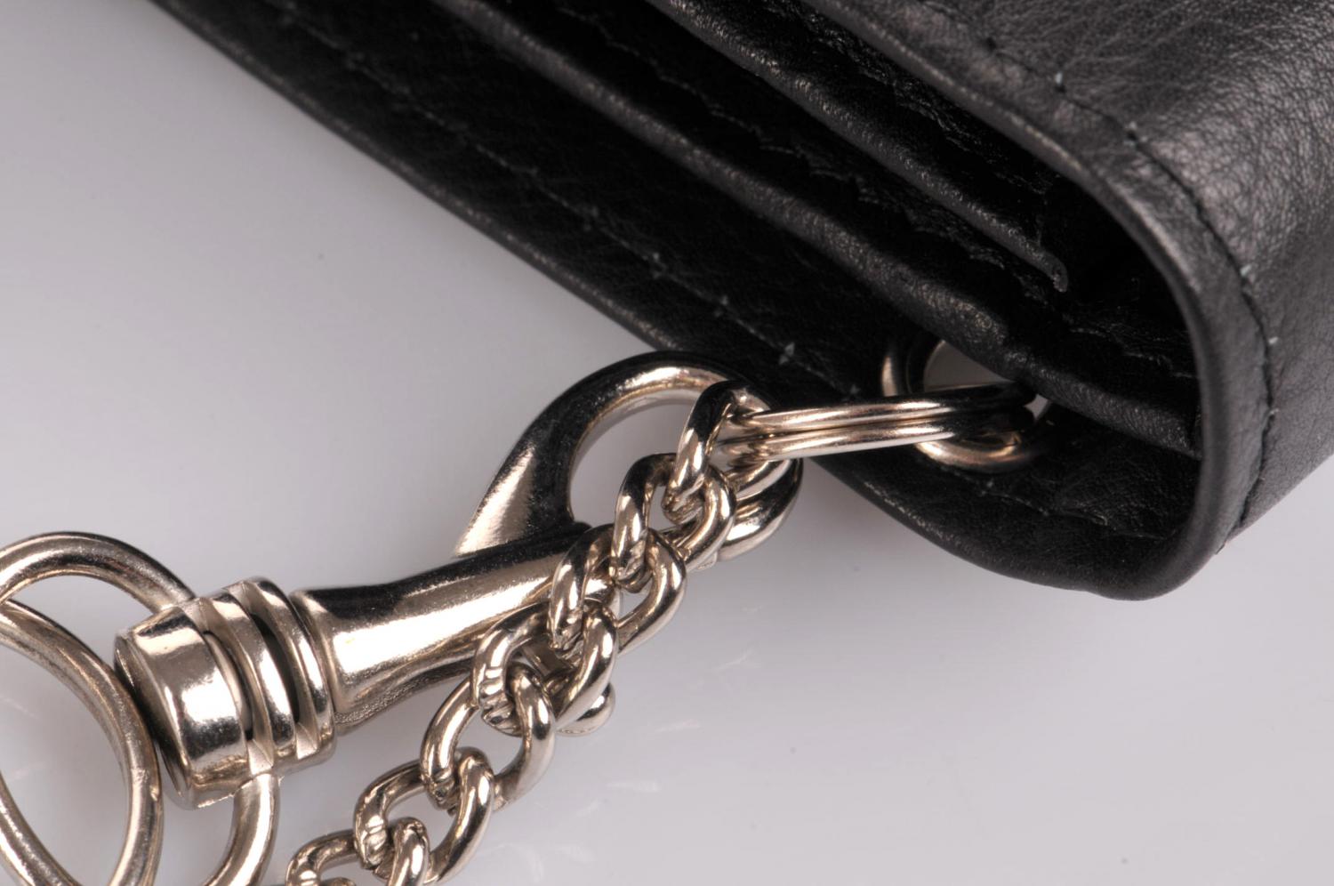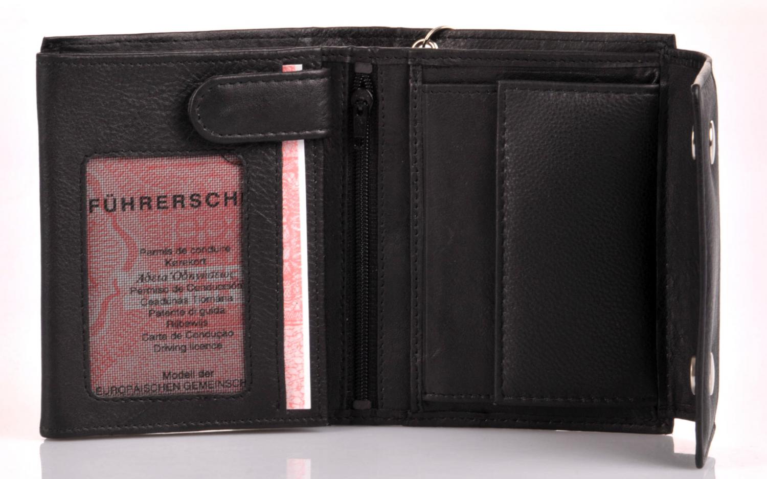 Pánská kožená peněženka s řetízkem, černá D-136