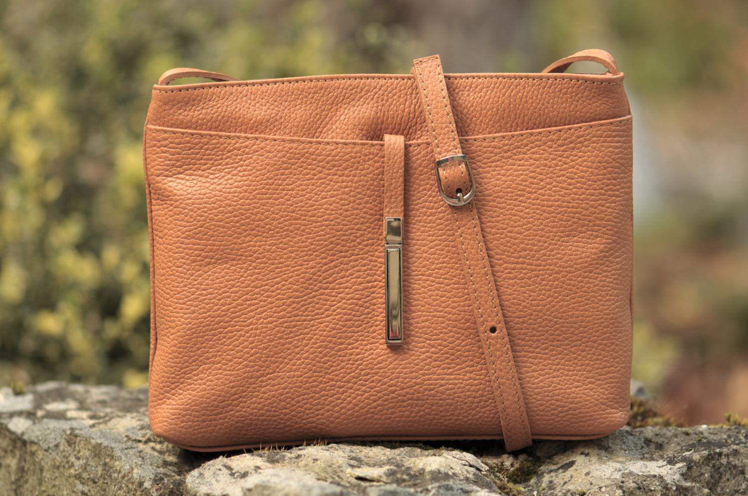 Dámská kožená crossbody kabelka 5085 hnědá camel