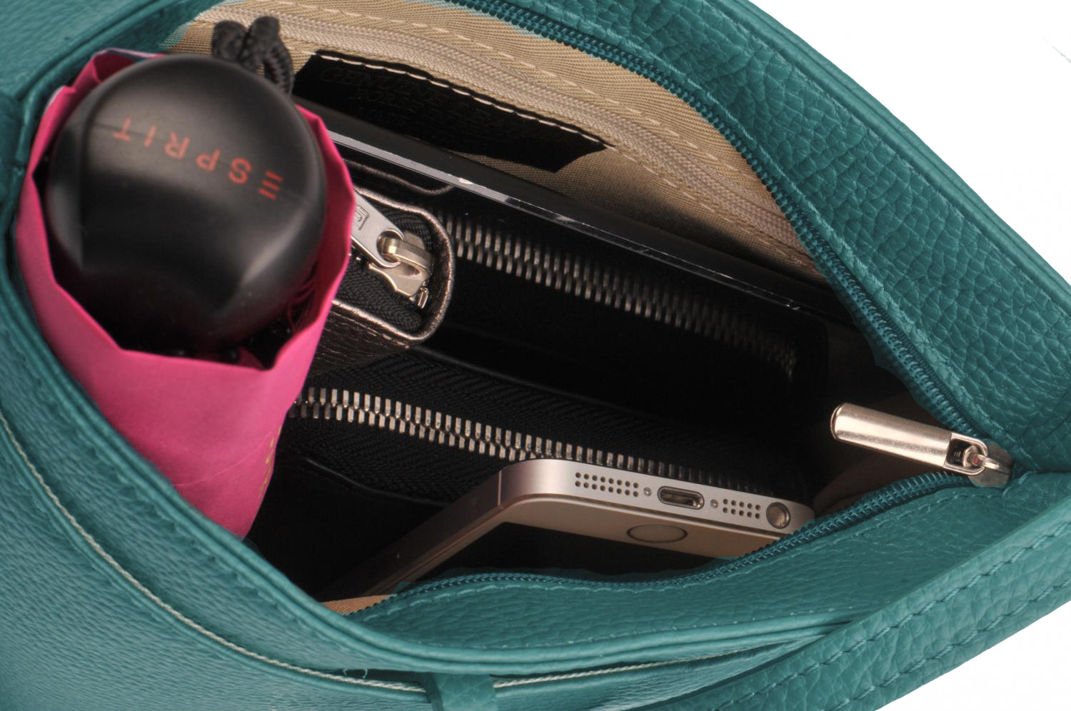 • Hlavní prostor se uzavírá na zip, uvnitř má textilní podšívku a malou zipovou kapsičku.