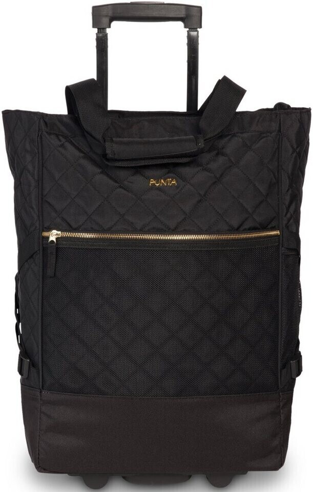 Elegantní a praktická nákupní taška na kolečkách PUNTA whell s velkou vnitřní a vnější kapsou. V nové elegantní černé barvě. Je ideální i na kratší víkendové cesty, nebo jako kabinovové zavazdlo do letadla, dobře se s taškou cestuje také vlakem.
