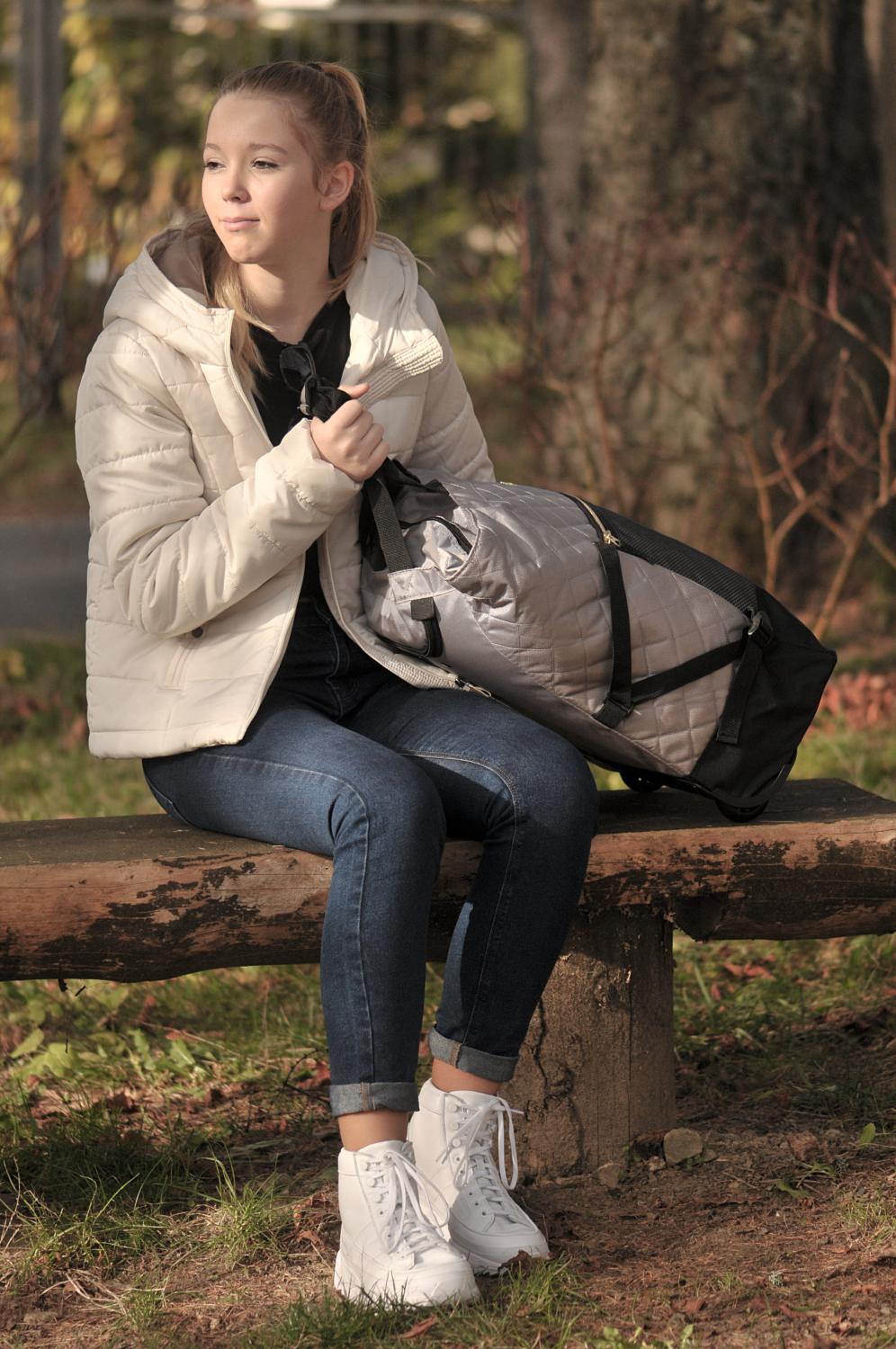 Inline kolečka jsou menší, proto doporučujeme používat na rovnějším povrchu. Tašku můžete nosit i přes rameno - ideální na schodech.