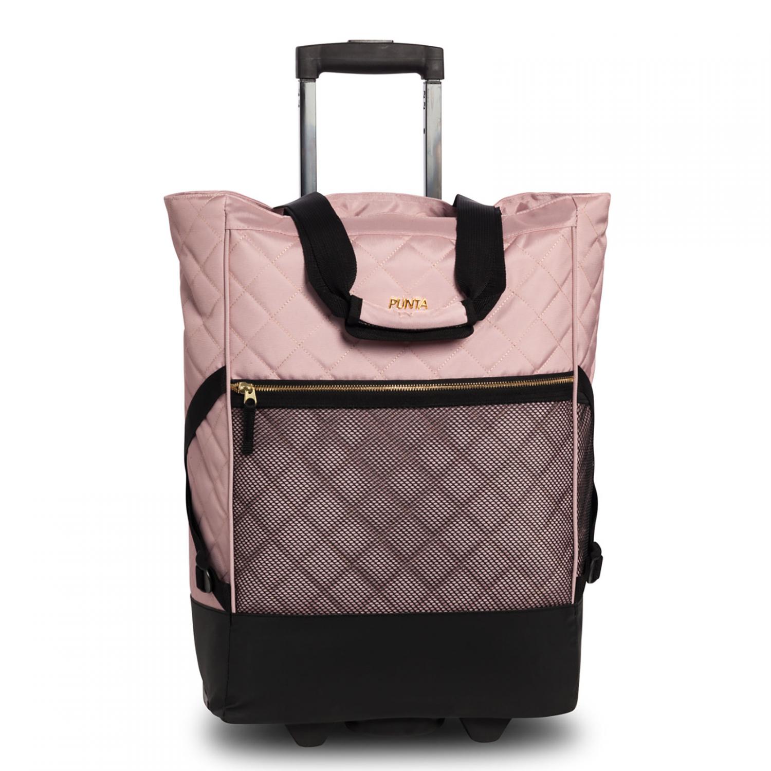 Elegantní a praktická nákupní taška na kolečkách PUNTA whell s velkou vnitřní a vnější kapsou. V nové světle růžové barvě. Je ideální i na kratší víkendové cesty, nebo jako kabinovové zavazdlo do letadla, dobře se s taškou cestuje také vlakem.