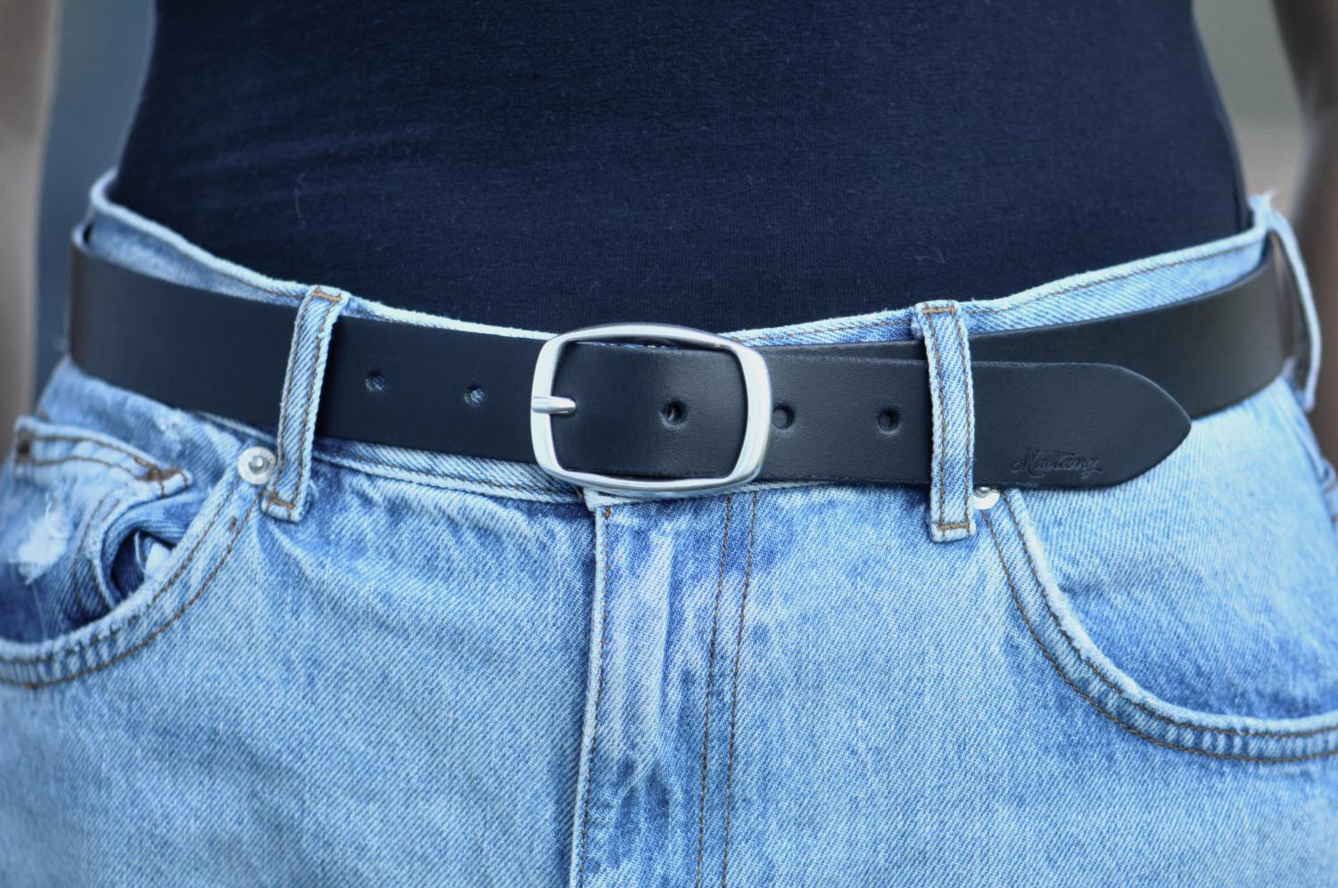 Dámský kožený černý pásek Mustang MW3043L15-0791, MUSTANG