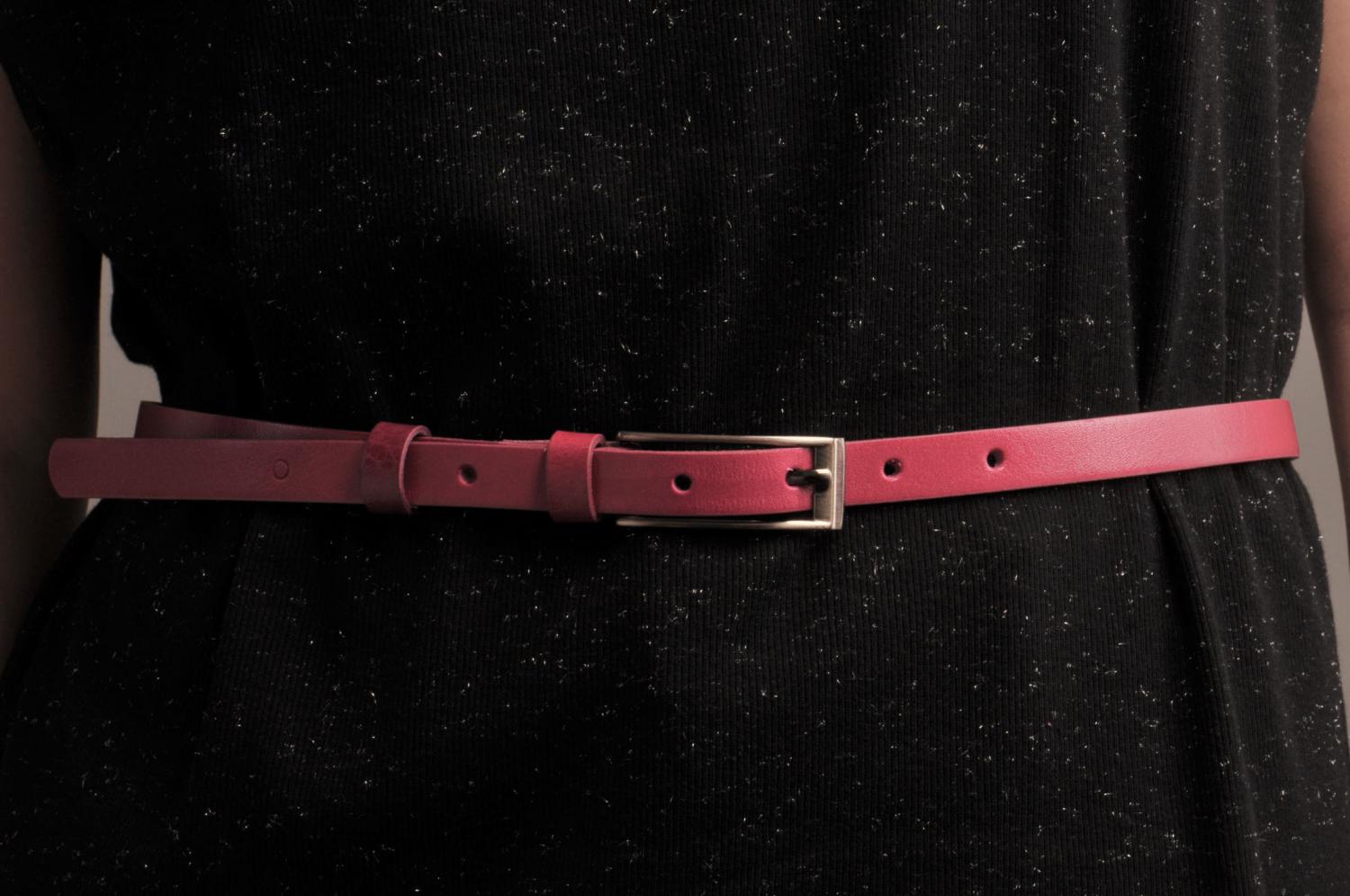 Fuchsiový dámský kožený opasek o šířce 15 mm má pěknou decentní sponu s povrchovou úpravou NKS (nikl satináto), s obsahem zinku. Pásek je vyrobený z matné usně v barvě fuchsií. Opasek má zabarvené hrany a upravený rub pásku, což zaručuje, že nedojde k zabarvení oděvu. Pásek není prošitý. Na výběr máte z pěti různých délek opasků. Prvotřídní kvalita od českého výrobce.