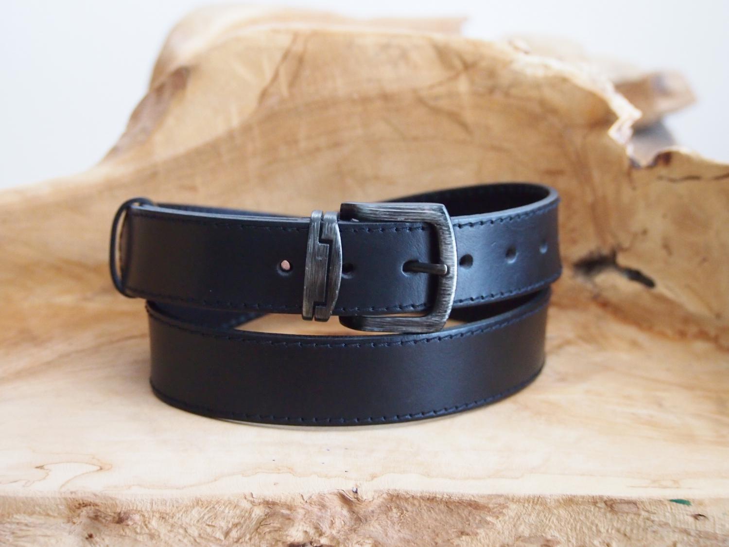 Černý pánský kožený opasek o šířce 40 mm má zajímavou sponu s povrchovou úpravou stíraný zinek. Tato spona neobsahuje nikl. Pásek je vyrobený z matné černé usně, která je příjemná na omak. Opasek má zabarvené hrany a upravený rub pásku, což zaručuje, že nedojde k zabarvení oděvu. Pásek je prošitý a lze ho zkrátit pomocí šroubku, který spojuje opasek a kožený díl se sponou. Na výběr máte z různých délek opasků. Prvotřídní kvalita od českého výrobce.
