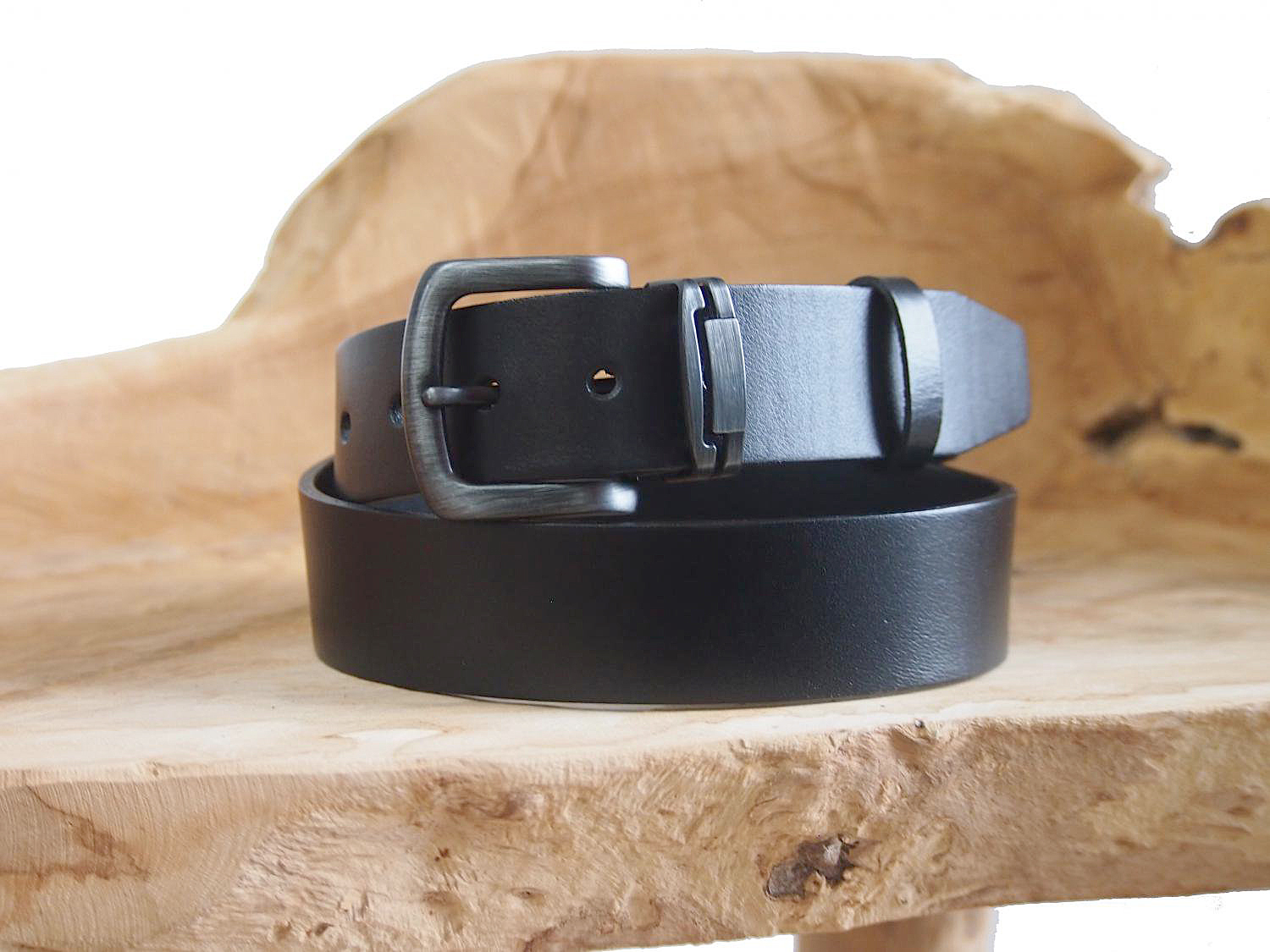 Černý pánský kožený opasek o šířce 40 mm má zajímavou sponu s povrchovou úpravou stíraný zinek. Tato spona neobsahuje nikl. Pásek je vyrobený z matné černé usně, která je příjemná na omak. Opasek má zabarvené hrany a upravený rub pásku, což zaručuje, že nedojde k zabarvení oděvu. Pásek je prošitý a lze ho zkrátit pomocí šroubku, který spojuje opasek a kožený díl se sponou. Na výběr máte z různých délek opasků. Prvotřídní kvalita od českého výrobce.