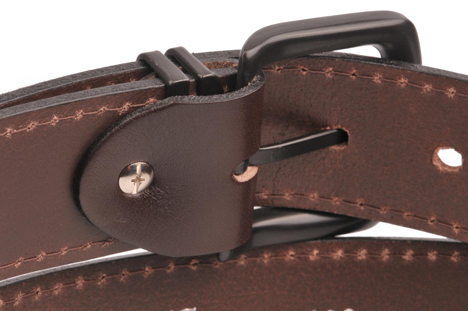 Hnědý pánský kožený opasek o šířce 40 mm má zajímavou sponu s povrchovou úpravou stíraný zinek. Tato spona neobsahuje nikl. Pásek je vyrobený z tmavě hnědé hladké matné kůže se zcela patrnou strukturou. Opasek má zabarvené hrany a upravený rub pásku, což zaručuje, že nedojde k zabarvení oděvu. Pásek je prošitý a lze ho zkrátit pomocí šroubku, který spojuje opasek a kožený díl se sponou. Prvotřídní kvalita od českého výrobce.