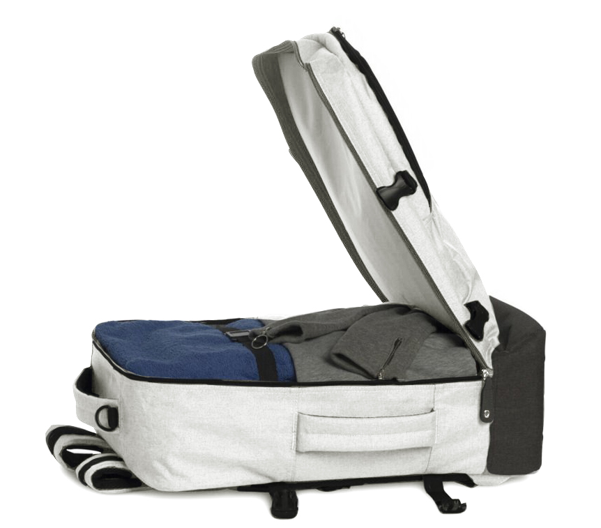 - Má hlavní přihrádku s objemem 36 litrů, uvnitř jsou dva kompresní popruhy na přichycení oblečení. Hlavní přihrádka je uzavíratelná zipem s dvěma taháčky.