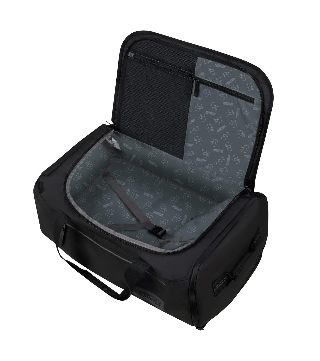 Hledáte cestovní tašku, která spojuje design, praktičnost a šetrnost k přírodě? Trailgo Duffle M od značky American Tourister je přesně to, co potřebujete. Tato elegantní černá taška je vyrobena z pevného a odolného materiálu Recyclex™, který pochází z 30 recyklovaných PET lahví – skvělá volba pro každého, kdo myslí na životní prostředí.