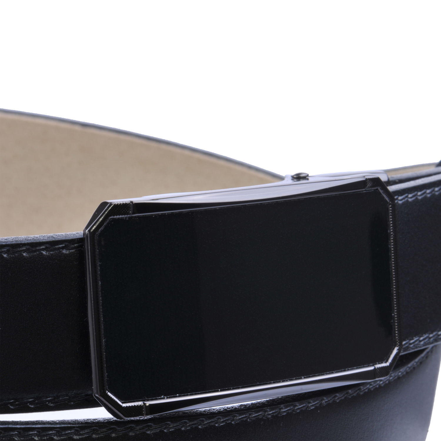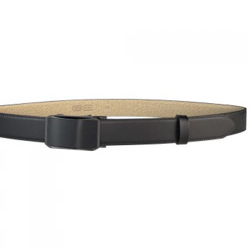 Černý pánský kožený opasek o šířce 35 mm má zajímavě řešenou plnou sponu s povrchovou úpravou NKS (nikl satinato). Tento opasek nemá dírky - spona AUTOMAT se zapíná speciálním mechanismem. Pásek je vyrobený z kvalitní italské úsně v černé barvě, podlepené světle béžovou kůží. Opasek je vhodný na nošení při společenských událostech. Pásek má lakované hrany i rub opasku, což zaručuje, že nedojde k zabarvení oděvu. Opasek lze ho zkrátit pomocí šroubku, který spojuje pásek a kožený díl se sponou. Prvotřídní kvalita od českého výrobce.
