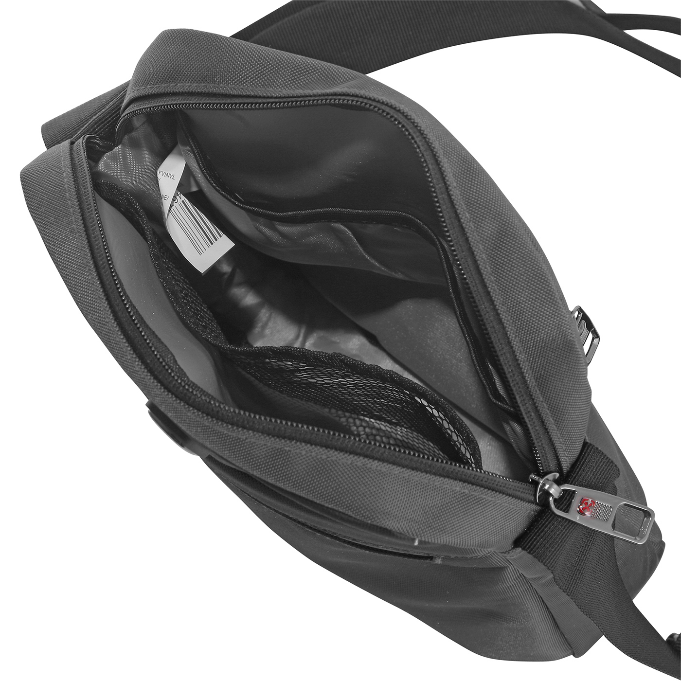 • pánská taštička přes rameno, vyrobená ze silné černé látky v kombinaci s červenou barvou.