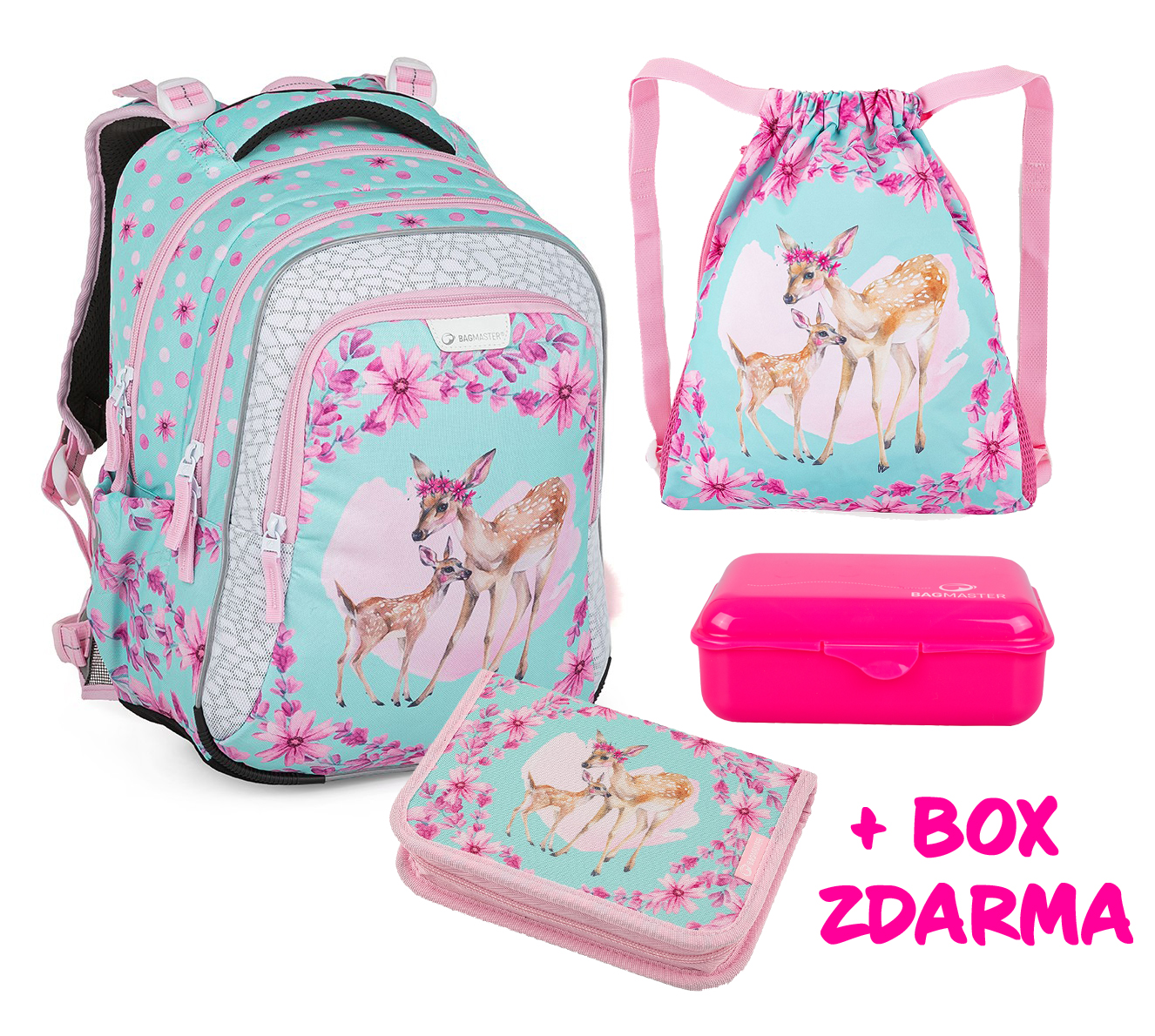 Malý školní set LUMI 23 A - Srnka a koloušek (batoh + penál + sáček na TV + box na svačinu), Bagmaster