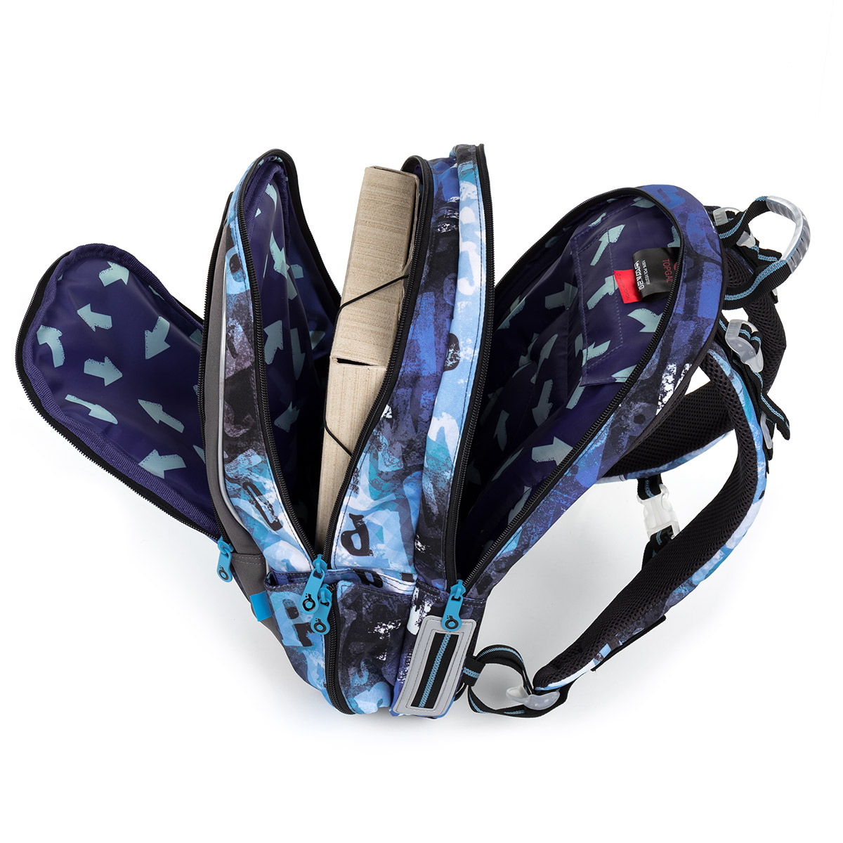 - Do dvou velkých komor se vejde vše potřebné, co musíte denně nosit do školy.