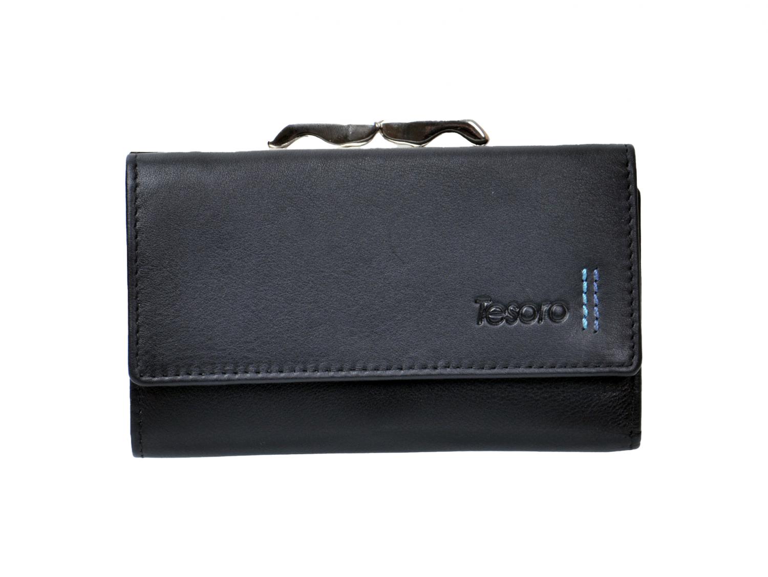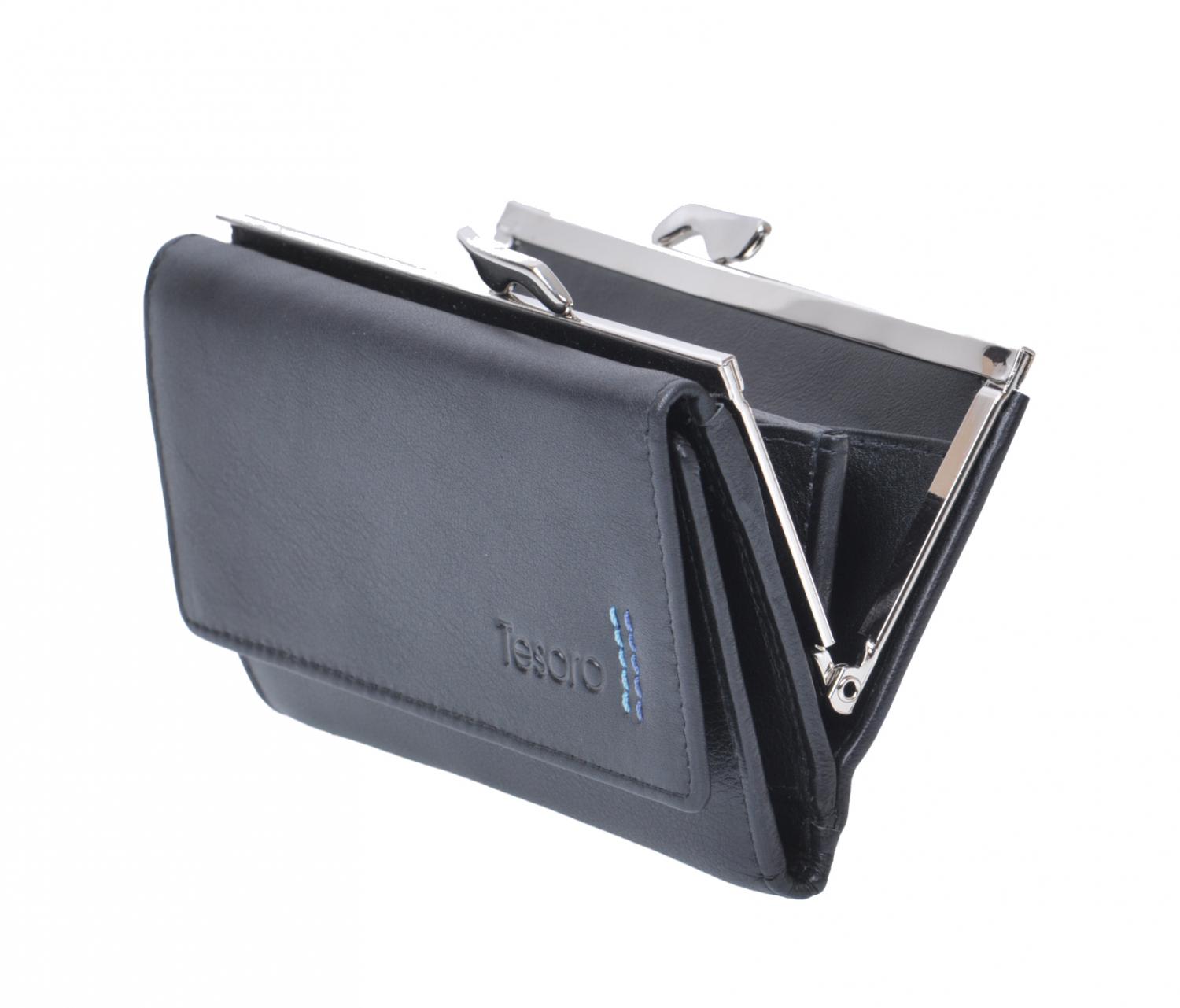 Dámská kožená peněženka s rámečkem na drobné 61595 černá, Tesoro